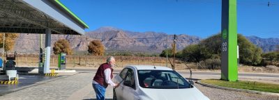 Entramos en una gasolinera a repostar, el único negocio abierto que encontramos. Y descubrimos la antigua fuente que anunciaba la entrada a Cafayate. Recuerdos hermosos de mi niñez y adolescencia.