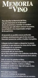 Se encuentra a 8 kilómetros de Cafayate con una finca de 20 hectáreas a una altura de 2.000 metros sobre el nivel del mar. Es propiedad de la familia Etchard y quien nos recibió fue Marcos.