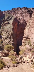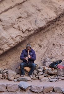 Las paredes tienen distintos colores que van cambiando según les da la luz del sol: rojos, ocres, marrones, rosados, anaranjados. La acústica es única. Encontramos un músico con su quena y el sonido era sobrecogedor.