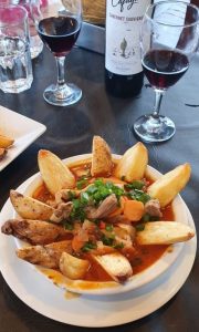 En un restaurante de la Plaza comimos estofado de llama y cabrito al horno, especialidades del lugar. Con un vino excelente: estábamos en la tierra “del buen vino”.