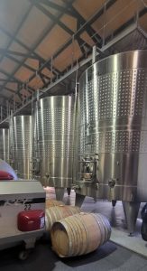 La bodega es relativamente nueva. Utilizan tanques de acero inoxidable para fermentar la uva. Cuando está listo, el vino se pasa a barricas de roble donde se añeja.
